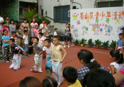 加油!看誰能得第一!小朋友們的游戲做的真認真.