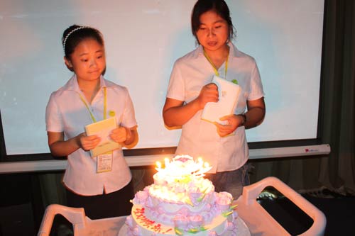 在這之后是溫馨的生日例會,本月的“壽星”是教學部趙楓林老師和行政部尚娥梅,讓我們一起為他們唱響生日歌吧!祝您生日快樂!