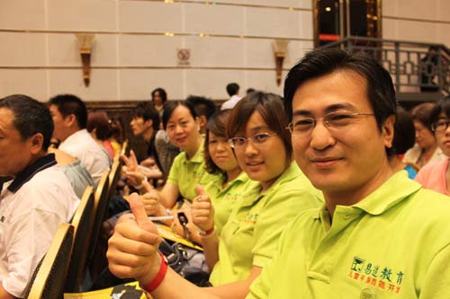 2011年8月3日星期三,這是易道教育每次例會的時間,這次卻有不一樣的精彩——“陳安之”的出現,讓我們大放異彩,會議的氣氛也被他所帶動,大家興高采烈的歡呼,舉起我們的右手,向下大力的攢勁,大喊一聲“Yes!”。
