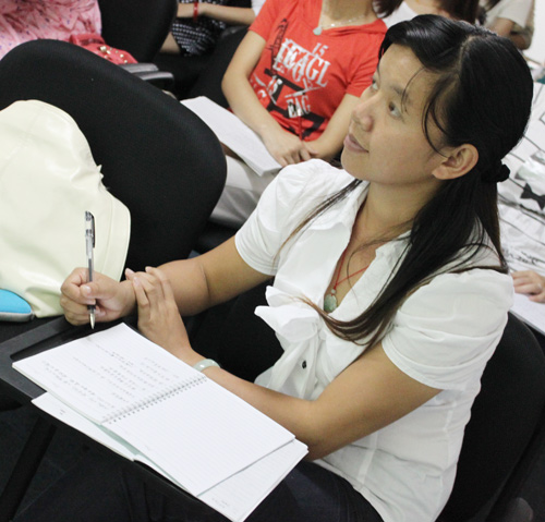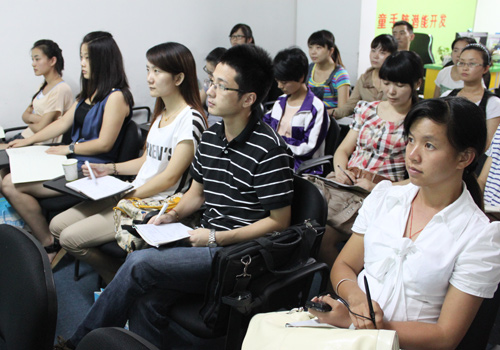 近期多雨,天氣轉(zhuǎn)涼,然而課堂的氣氛異常火熱。遠(yuǎn)道而來的老師們聚精會(huì)神地聽講,總部的老師全神貫注地講課,互動(dòng)積極,教學(xué)相長。