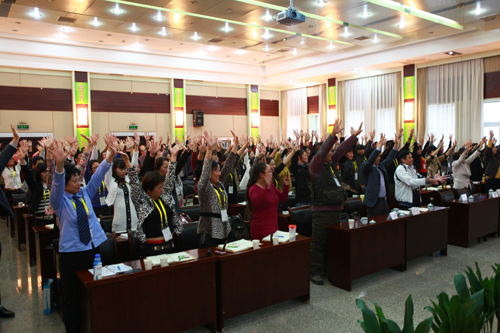 61歲的盧勤老師,曾是《中國少年報》著名欄目“知心姐姐”多年的主持人,52歲時又創辦了《知心姐姐》雜志。她個人撰寫的關于家庭教育的圖書銷售量超過500萬冊,被廣大的少年兒童和家長譽為“知心姐姐”。下午三時許,講座正式開始。盧勤老師一襲紅裝,精神矍鑠,抑揚頓挫的表達,張弛有度的動作,將現場氣氛調動得非常活躍。“好!好!好!太好了!”“行!行!行!我能行!”“棒!棒!棒!你真棒!”場下200余位嘉賓積極主動地配合盧勤老師,會場上笑聲不斷,掌聲不絕。