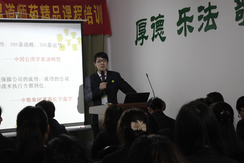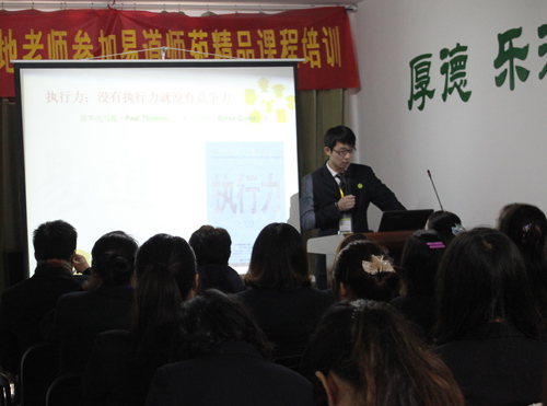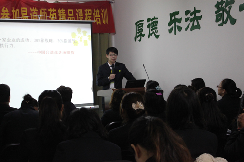 一曲悠揚(yáng)的吉他小調(diào)在李老師的演繹下,贏得大家的陣陣掌聲。李健老師負(fù)責(zé)易道教育西南、西北片區(qū),平時(shí)比較低調(diào),今天的表現(xiàn)讓大家刮目相看。開場(chǎng)曲結(jié)束之后,轉(zhuǎn)入正題。“沒有執(zhí)行力就沒有競(jìng)爭(zhēng)力”。李健老師通過國(guó)內(nèi)外眾多知名企業(yè)家的名言和實(shí)例,論證了執(zhí)行力的重要性。層層深入,又探討了一般人對(duì)執(zhí)行力的態(tài)度。