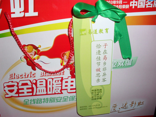 總經辦領導為各位員工及其家人精心準備了兩份禮物——一封家書和一床雙人電熱毯。由易道教育總經理祝宏慧老師親手書寫的一份份家信,散發著怡人的墨香和暖暖的愛意,在座的各位老師都表示在意外中非常感動。