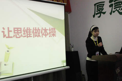 2012年2月7日上午,來自研發(fā)培訓(xùn)部的楊陽老師為易道總部全體同仁帶來了一場極具科學(xué)性與實用性的主題講座——《讓思維做體操》。本次講座用時一個多小時,內(nèi)容豐富連貫,穿插著鮮活有趣的思維訓(xùn)練游戲,讓在座的老師們通過切身實踐感受思維的魅力。