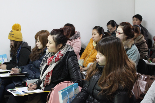 2012年2月16日,易道教育新一期師資培訓(xùn)按期舉行。為迎接即將到來的春季招生熱潮,易道全國各部落紛紛采取相關(guān)措施做好教學(xué)保障工作,提高教學(xué)水平。參加本期培訓(xùn)的老師們來自上海、巢湖、池州、盤錦、平頂山、井陘、元謀、泌陽,各位老師們以飽滿的熱情認(rèn)真聽講,積極互動(dòng),講座現(xiàn)場(chǎng)氣氛十分熱烈。 2月16日上午,由企劃部部長(zhǎng)韓敬培老師為大家?guī)硪粓?chǎng)《加盟商操作講座》。在座的老師共同觀看了“2035易道行”和“2011年易道教育全國校長(zhǎng)大會(huì)精彩視頻剪輯”,理論與視頻互相穿插,將近3個(gè)半小時(shí)的講座在輕松活潑的氛圍中結(jié)束了。 2月16日下午,研培部陳云老師和王婷老師分別為遠(yuǎn)道而來的老師們準(zhǔn)備了一場(chǎng)手腦演寫作文講座和一場(chǎng)手腦識(shí)字與閱讀講座。易道總部老師以專業(yè)的教師素養(yǎng)和充足的教學(xué)經(jīng)驗(yàn)在課堂上發(fā)揮得游刃有余,各位老師在聽完講座后紛紛表示受益匪淺。 預(yù)祝參加本次師資培訓(xùn)的老師們?cè)谝椎揽偛渴斋@多多,將所見所想帶回各部落,并發(fā)揮到實(shí)際教學(xué)中,為易道的小朋友們帶去更多的驚喜與幫助!