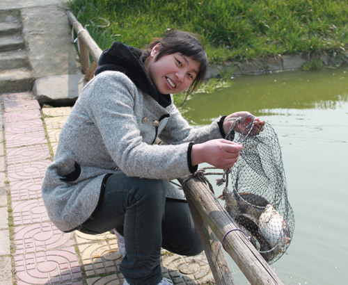 陽光暖暖照著大地,不一會兒,老師們的小挎籃里都是滿滿的草莓。打一桶井水,將草莓浸在清涼的水里,晾一會兒,輕輕咬上一口,感覺美極了!時至中午,忙得不亦樂乎的老師們戀戀不舍地離開草莓田。老鄉們熱情地準備了一桌桌豐盛的農家特色菜肴,讓大家細細感受大自然的味道。飯后,老師們展開各類活動,釣魚大受追捧。
