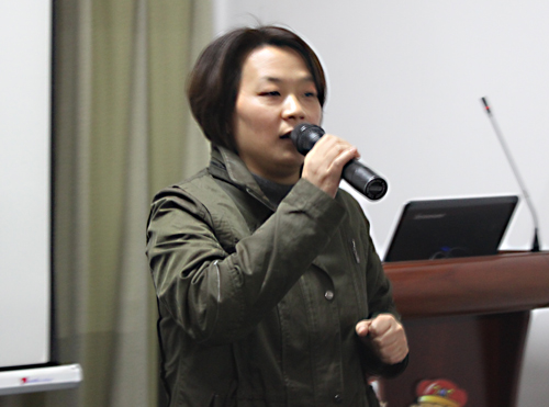 加盟事業部二部部長張紹輝老師是一個積極向上,充滿磁力的年輕人,他打造出一支“嗷嗷叫”的團隊,而一部部長李霞老師是一個沉穩認真,做事細心的人。他們以各自的方式向大家匯報了本月加盟事業部的工作情況,同樣自信,同樣讓大家充滿干勁。