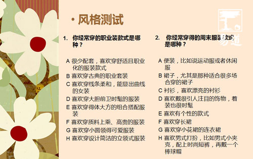 2012年4月17日上午,易道教育研培部周夢老師為“江湖令”帶來一股強勁的潮流風,服飾、搭配、妝容、色彩······各種流行元素接連登場,讓人目不暇接。