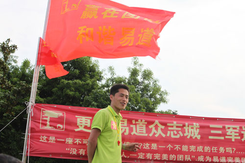 到達目的地“杏花公園”,整隊 “贏在團隊 和諧易道”野外拓展訓練第一項:“陸地飛龍舟”大腳板 授勛儀式——參謀總部總指揮為一連戰士授勛并頒獎 敬禮! “贏在團隊 和諧易道”野外拓展訓練第二項:“離天三尺三”信任背摔 “贏在團隊 和諧易道”野外拓展訓練第三項:“穿越封鎖線” 授勛儀式——參謀總部總指揮為二連戰士授勛并頒獎 “贏在團隊 和諧易道”野外拓展訓練第四項:“易道畢業墻” 作戰參謀、易道加盟事業部二部部長張紹輝老師 易道精神,團隊精神:不拋棄,不放棄一個戰友 2012年易道野外拓展訓練全體戰友合影留念 在易道 易道中國研培部 易道中國手腦操事業部 易道中國教學部 易道中國企劃部 易道中國加盟事業部 易道中國總部全體員工 誰是最可愛的人?我,易道人!