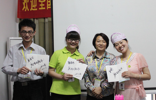 會議重點分為三個環節,首先,公司全體同仁共同觀看了4月23日“贏在團隊,和諧易道”野外拓展訓練的視頻剪輯,精彩的畫面記憶了一個個珍貴的瞬間。其次,在公平公正的一貫原則下,易道4月份優秀員工通過四輪選舉,最終由加盟事業部趙立春老師榮獲。最后,5月易道員工生日會在溫馨的燭光和歌聲中圓滿落幕。