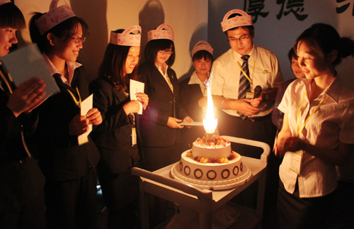 2012年10月8日上午,易道易家人又相聚在一起,開始了十月的首期例會。會議分為兩大環節,一是九月優秀員工選舉,經過五輪激烈的投票選舉,最終由旗艦校楊陽老師獲得。二是為十月份過生日的老師慶祝生日,在溫馨的燭光里,美味的蛋糕上,真誠的祝福中結束了本次例會。