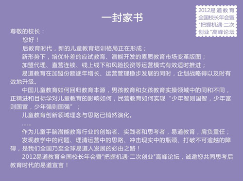 2012易道教育全國校長年會暨“把握機遇?二次創業”高峰論壇邀請函