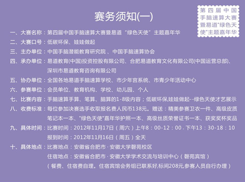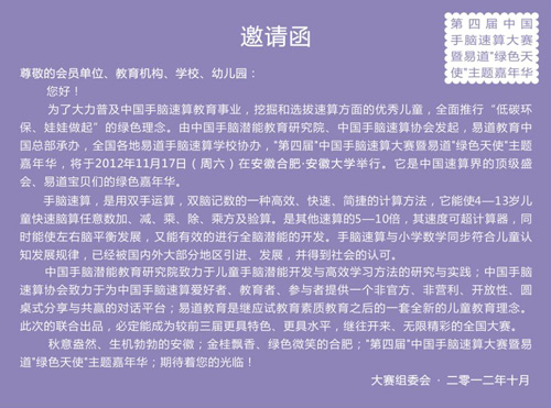 第四屆中國手腦速算大賽暨易道“綠色天使”主題嘉年華邀請函