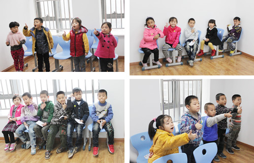 旗艦校各個教室都成了考場,里面坐著一排排小選手,等著輪到自己上場。那一張張稚嫩的小臉上,都露出既緊張又期待的表情;一雙雙小手隨著老師的報題靈活的變動著,速度之快,答案之準(zhǔn)確令大人都自嘆弗如。