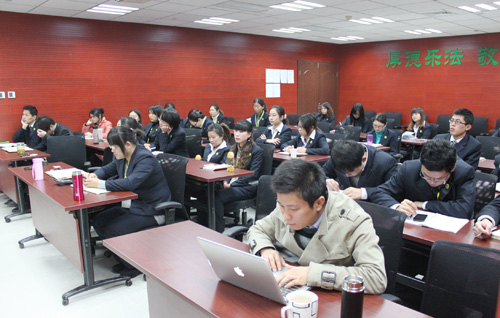 2012年11月13日上午,在易道教育總部新會議廳里,全體領導和員工共同參加了本月第一期例會。會議重點分為三個環節,首先是易道10月份優秀員工的選舉,在公平公正公開的一貫原則下,通過四輪選舉,最終由運營管理部姚星星老師榮獲。其次是總經辦的祝老師和季老師對選舉結果的點評。最后是全體老師為11月份過生日的老師舉辦了溫馨的生日會,在歡快的生日祝福歌聲中,本期例會圓滿結束。