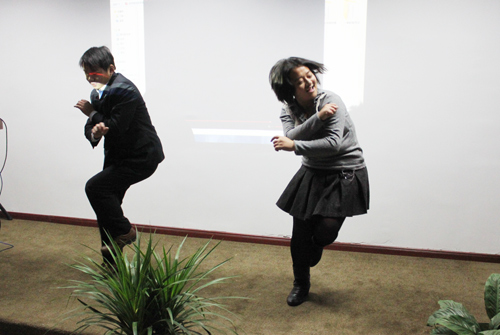 之后加盟事業部劉偉老師為大家高歌一曲《青花瓷》,優美的旋律后熱烈的掌聲響起。旗艦校老師也不甘示弱,曹磊老師和祝寅蕾老師給大家帶來了精彩的爵士舞蹈,動感的音樂,高難度的動作讓兩位化身為會場大明星。尖叫和掌聲從不會吝嗇給優秀的老師。