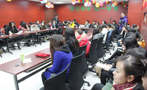 2012年12月31日,易道所有的老師早早的來到公司,在師苑夢工場開始了2012年度最后一期例會。會議在韓敬培老師的主持下開始了,首先是十二月份的優秀員工選舉,在經過五輪的激烈PK后,最終由旗艦校曹磊老師榮獲;其次為全年優秀員工頒發榮譽證書;再次是為加盟事業部業績突出的老師頒發榮譽證書;最后是總經辦的各位領導針對例會的內容總結發言。
