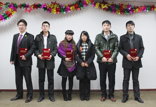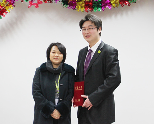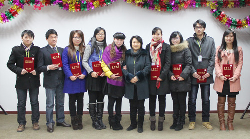 祝老師為2012年度所有優秀員工頒發榮譽證書,并允諾所有優秀員工可以自行商量國內一日游。