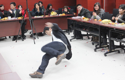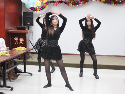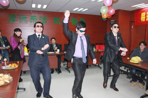 第一支開場(chǎng)舞是由運(yùn)營(yíng)管理部部長(zhǎng)韓敬培老師、加盟事業(yè)部王雙雙老師、劉偉老師領(lǐng)舞,全體老師參與的《江南style》。神曲的力量果然不同凡響,立馬HIGH翻全場(chǎng)。接下來(lái)動(dòng)聽的歌曲、優(yōu)美的舞蹈、搞笑的小品、好玩的游戲及豐厚的獎(jiǎng)品依次登臺(tái),點(diǎn)燃聯(lián)歡會(huì)現(xiàn)場(chǎng)的熱情。每一場(chǎng)表演,每一次亮相都是精彩,掌聲和歡笑聲是最好的見(jiàn)證。