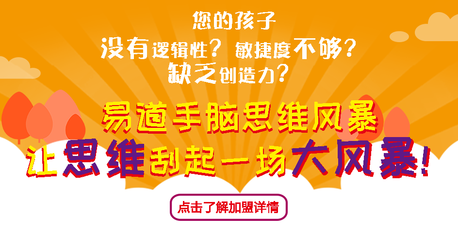 每個孩子都有星空一樣的想象、童話一樣的故事、詩歌一樣的語言,但被無情的人文環境和自然環境所污染了,進入小學后漸漸地無事可想,無話可寫。易道手腦思維風暴,趣味性數學課堂、提升數學教學的科學性、開拓孩子的思維能力,激發孩子的創造能力。