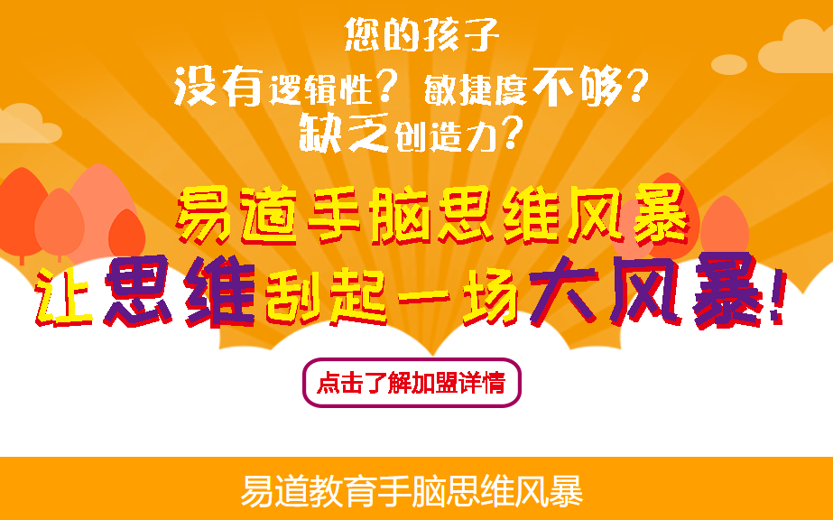 易道手腦思維風暴,讓孩子快樂地學習。趣味游戲的互動、情境故事的穿插、思維火花的碰撞,在積極踴躍、妙趣橫生的課堂氛圍里,培養孩子的合作競爭意識,提高孩子的思維能力、專注能力,增加孩子對數學課程的興趣。
